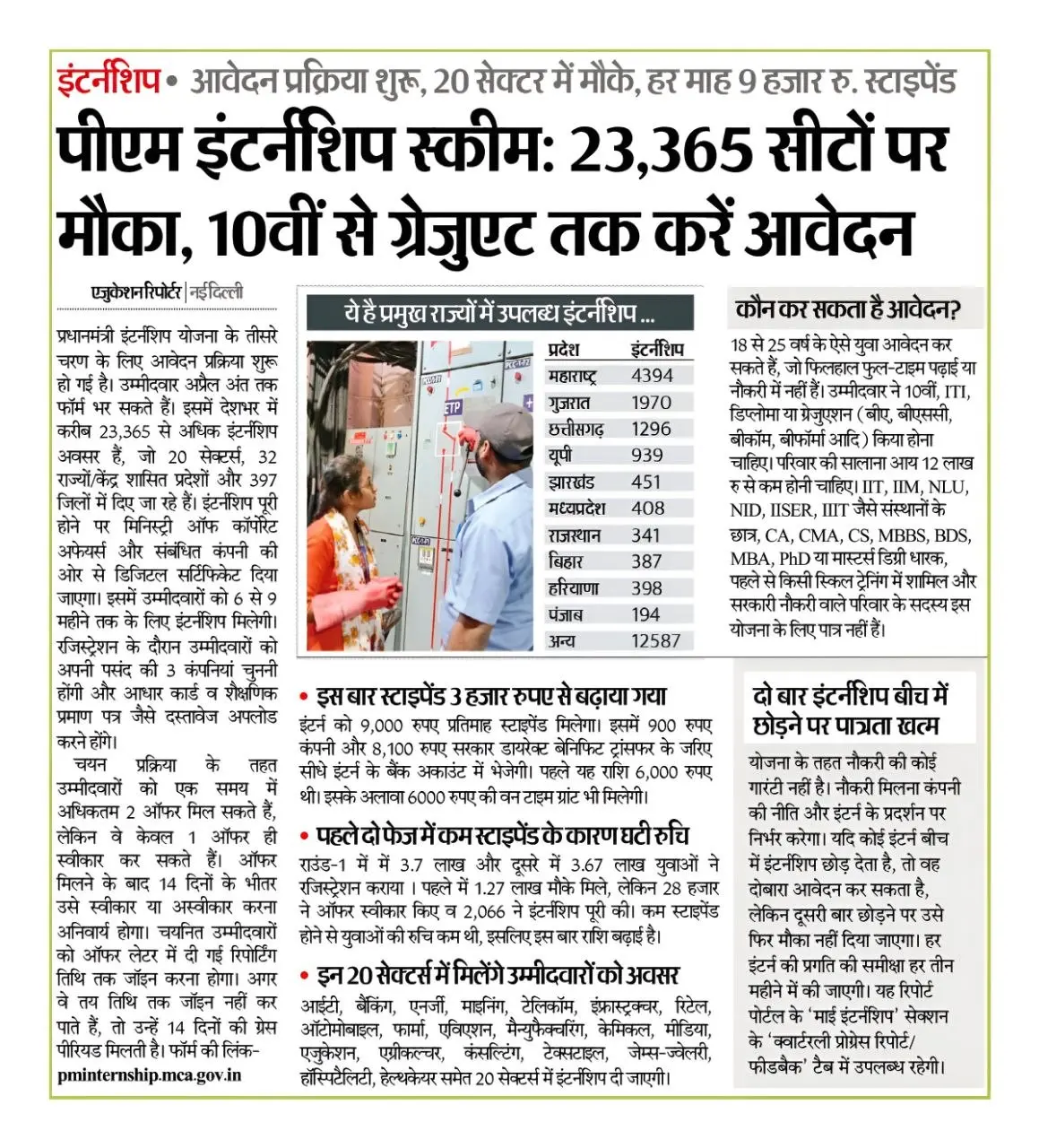 उम्मीदवारों को हर महीने ₹9,000 का स्टाइपेंड दिया जाएगा, जिसमें ₹8,100 सरकार की ओर से और ₹900 संबंधित कंपनी द्वारा दिया जाएगा। इसके अलावा, चयनित उम्मीदवारों को एक बार ₹6,000 की अतिरिक्त सहायता राशि भी प्रदान की जाएगी। इस स्कीम में आईटी, बैंकिंग, मैन्युफैक्चरिंग, टेलीकॉम, इंफ्रास्ट्रक्चर और रिटेल जैसे 20 से अधिक सेक्टर शामिल हैं, जिससे युवाओं को वास्तविक कॉर्पोरेट माहौल में काम करने का अनुभव मिलेगा।